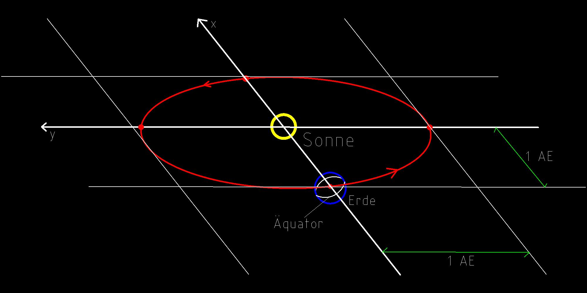Sonne eine Gerade, die auch durch die Äquatorebene der Erde geht.