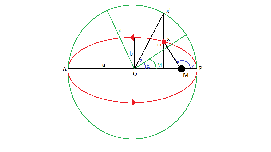 E: exzentrische Anomalie (Winkel zw. Orbitmittelpunkt und orbitalen Objekt)