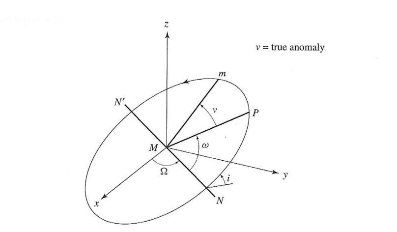 ν: wahre Anomalie (winkel zw. Perihel und orbitalen Objekt)